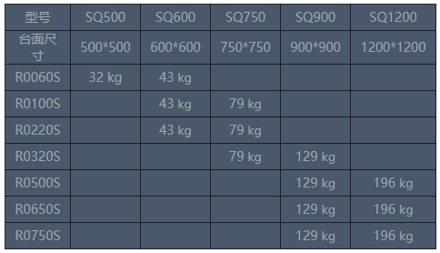 標(biāo)準(zhǔn)方形擴展臺的質(zhì)量表